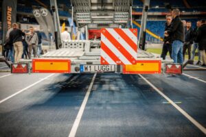 Existen también requisitos adicionales en cuanto a los remolques de más de 2,1 m de anchura; en estos casos, el remolque debe contar con luces de gálibo delanteras y traseras. Independientemente de la configuración, todas las luces deben estar homologadas, tener una distribución óptica adecuada y estar colocadas de forma que la luz emitida sea visible desde la distancia requerida. Una iluminación adecuada de la grúa no solo cumple las normas, sino también, sobre todo, aumenta la seguridad del trabajo y del transporte.