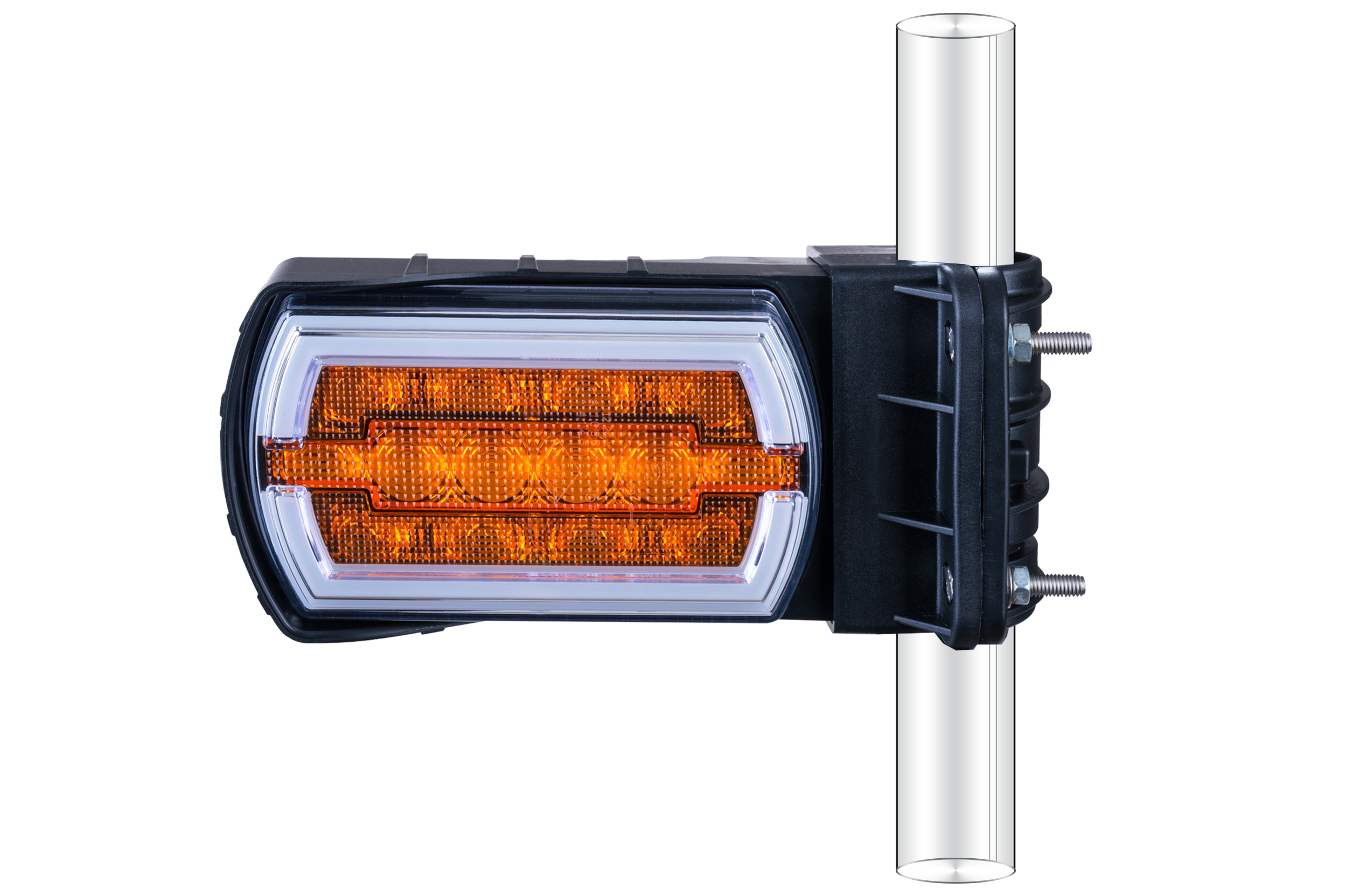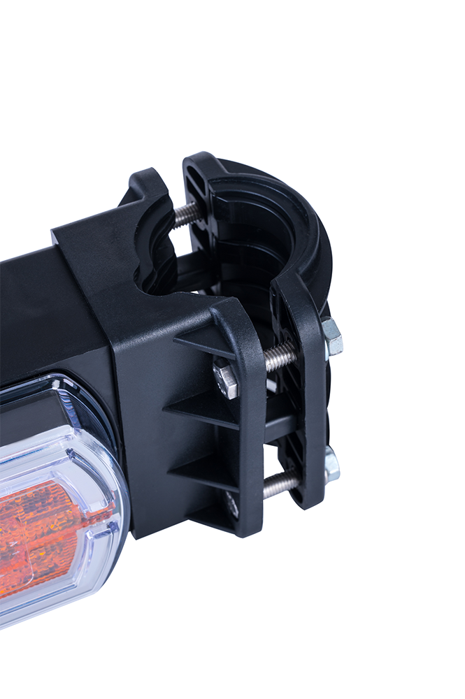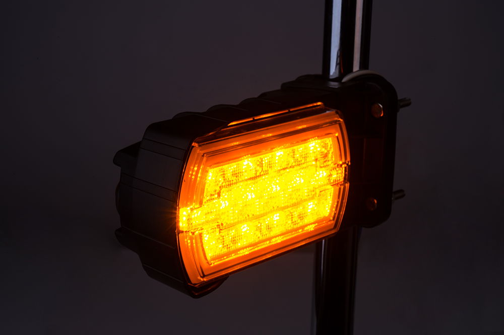 La luz LZD 2789/R1 con el montaje en el tubo ø20÷30 mm tiene un montaje universal y se puede instalar tanto en la parte izquierda como en la parte derecha del vehículo, en posición vertical u horizontal. Está equipada con funciones luminosas: luz de posición delantera con efecto NEON e intermitente delantero y lateral.