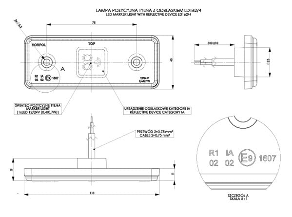 Luz de gálibo rectangular con reflejo, roja, con almohadilla de goma con reborde