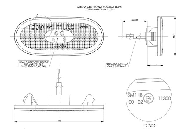 Luz de gálibo lateral ovalada, con reflejo HOR 59, con diodos LED 12/24V.