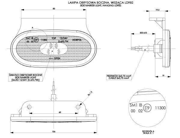 Luz de gálibo lateral ovalada, con reflejo HOR 59, colgante, con diodos LED 12/24V