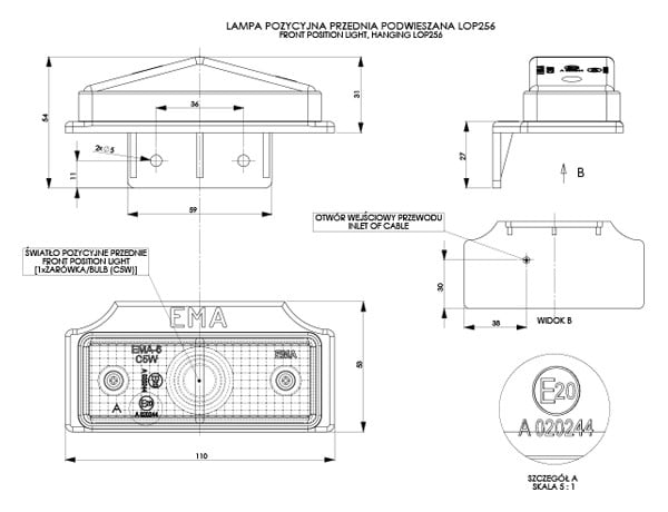 Luz de gálibo plana – suspendida, blanca