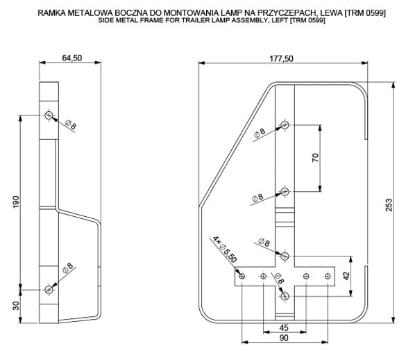 Marco lateral metálico para instalar luces en remolques – izquierdo